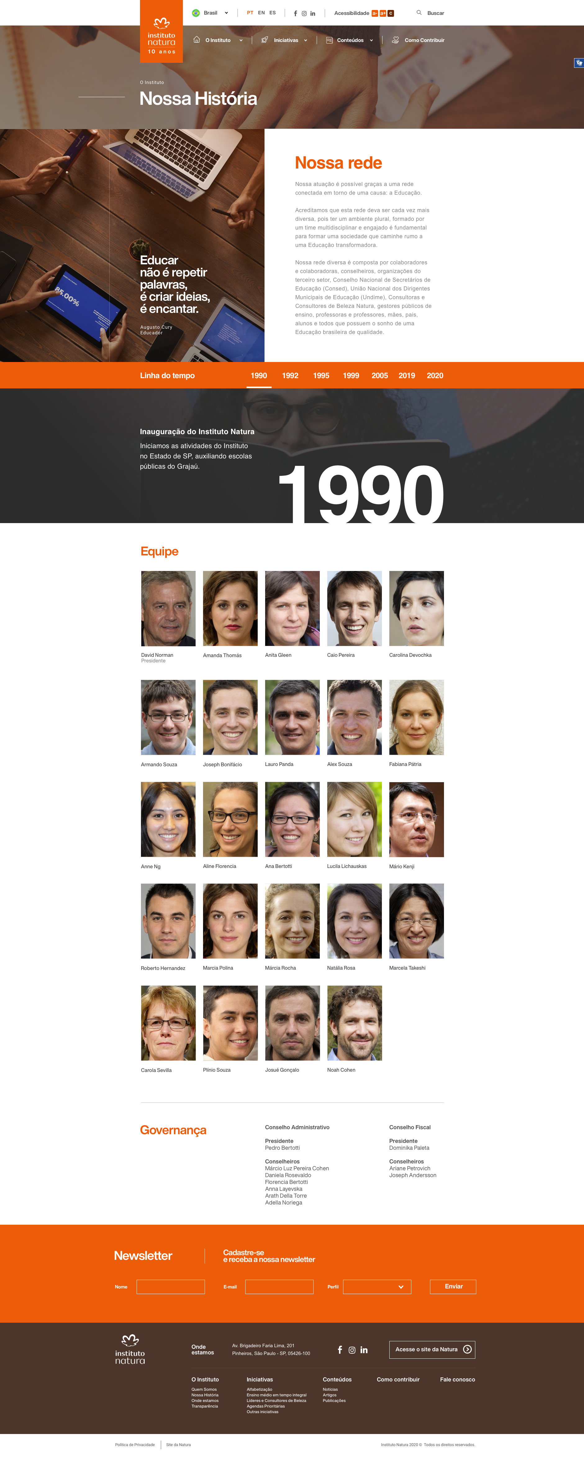 Possui uma linha do tempo da história do Instituto, separado por datas, cujo o conteúdo e as imagens de fundo se altenam