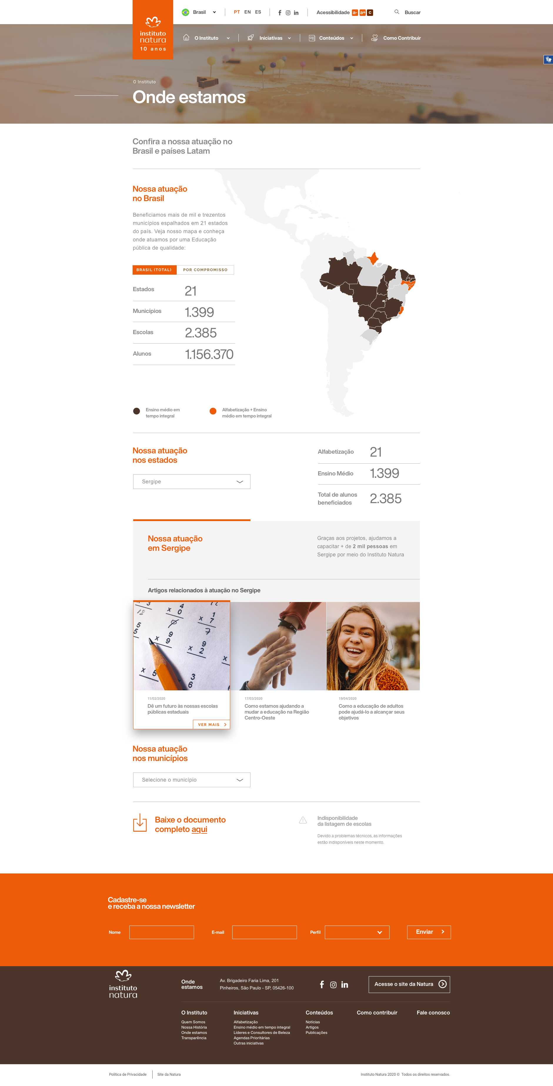 Aqui é possível encontrar informações sobre os resultados em números do Instituto Natura, separados por estados e municípios.