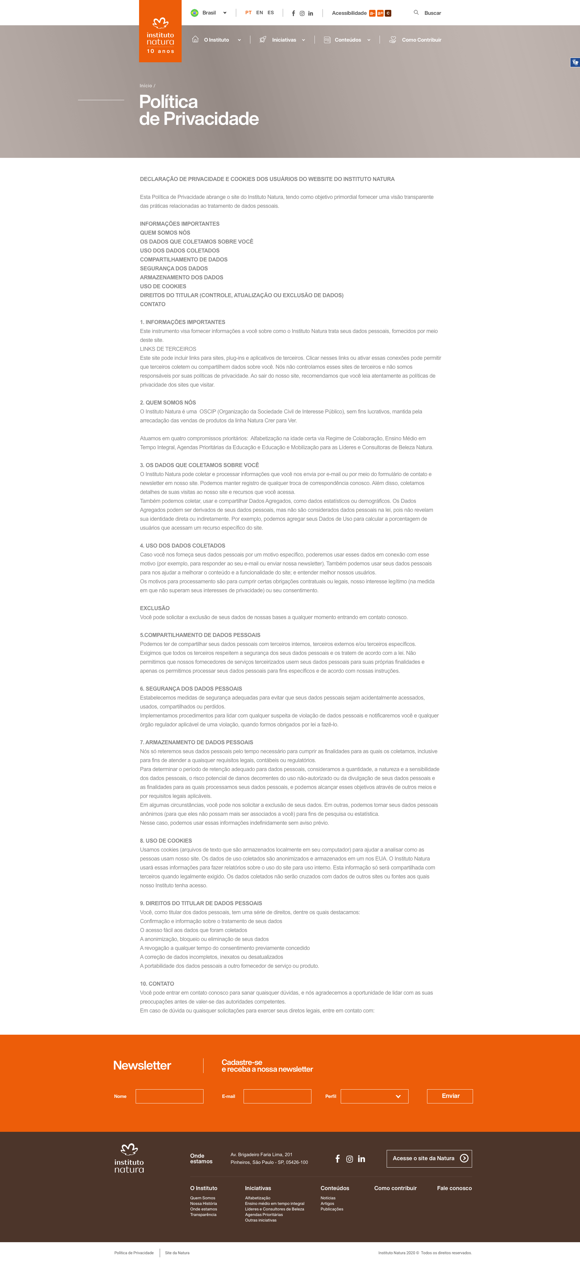 Direciona para notícias sobre o Instituto e outros textos, como política de privacidade e fale conosco.