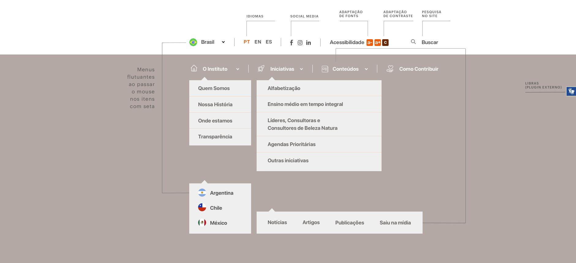 Contém o manifesto do instituto, além de chamadas para outras seções do site.